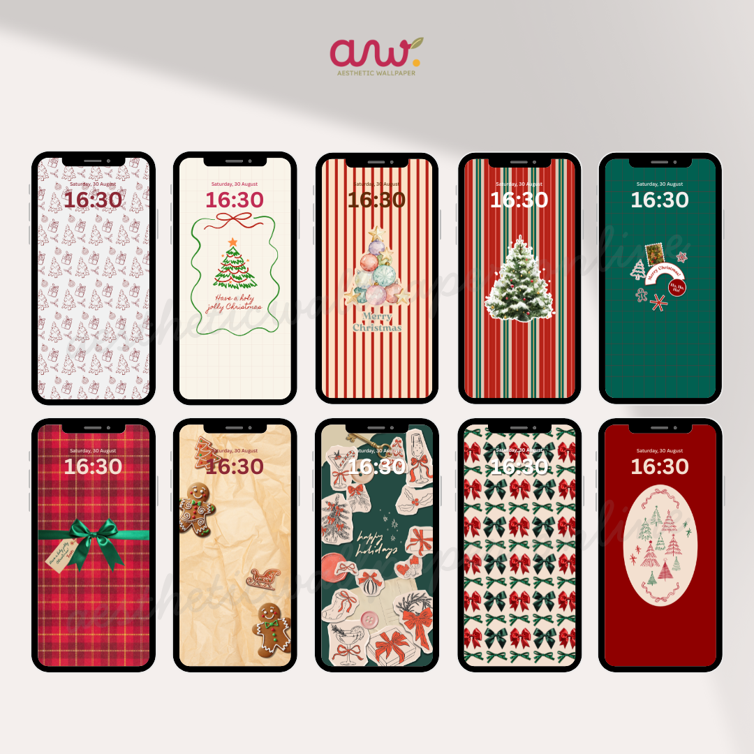 High-resolution digital files are provided for instant download and easy setup. Suitable for users looking for simple and aesthetic Christmas backgrounds for iPhone with classic festive elements and minimal layouts.